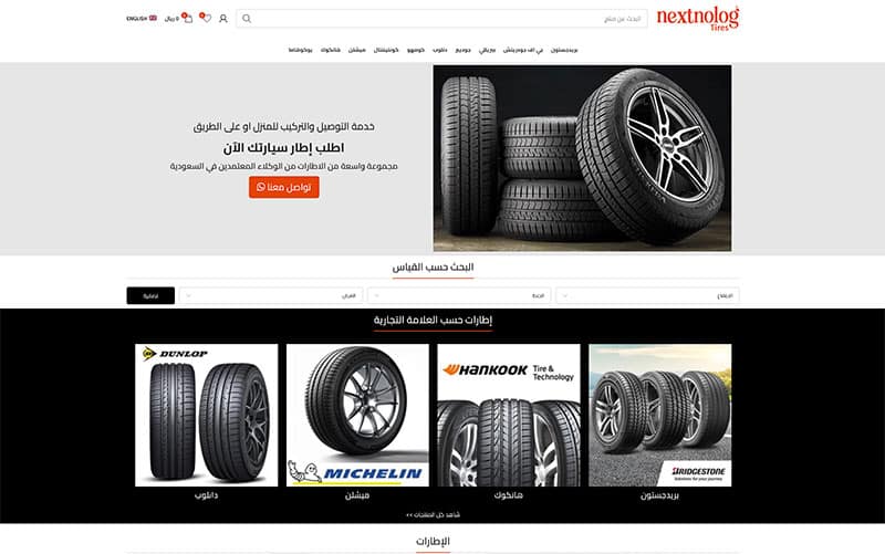 موقع متخصص بعرض كفرات السيارات بتصميم عصري وسهل الوصول للمنتج حسب العلامة التجارية او مقاس الكفر.